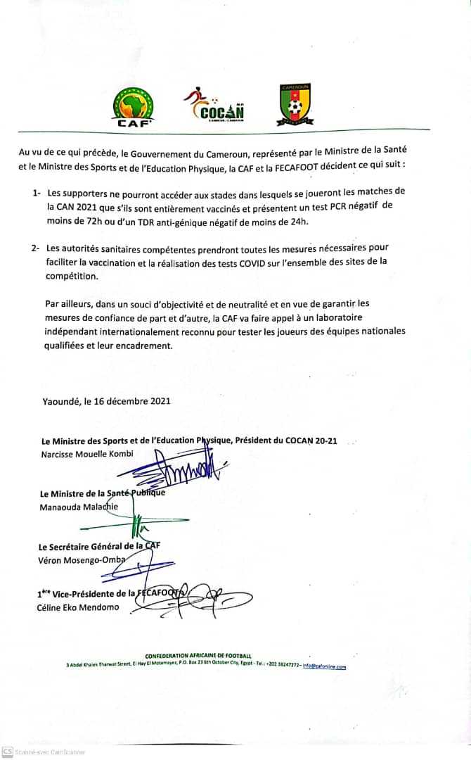 Le communiqué conjoint de la CAF, de la Fecafoot et du Cocan